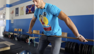 It’s more than just a “wide grip.” To find your ideal snatch grip width, hold a stick or PVC pipe at your hip crease while standing upright.